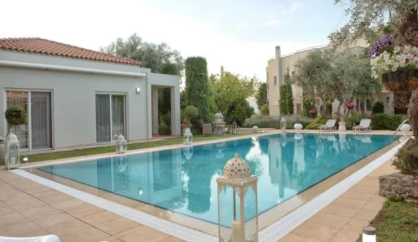 Die Unterkunft Muses Chalkida κατοικία με πισίνα, die über einen Außenpool, einen Garten und eine Terrasse verfügt, bietet Übernachtungsmöglichkeiten in Kánithos mit kostenlosem WLAN und Poolblick.